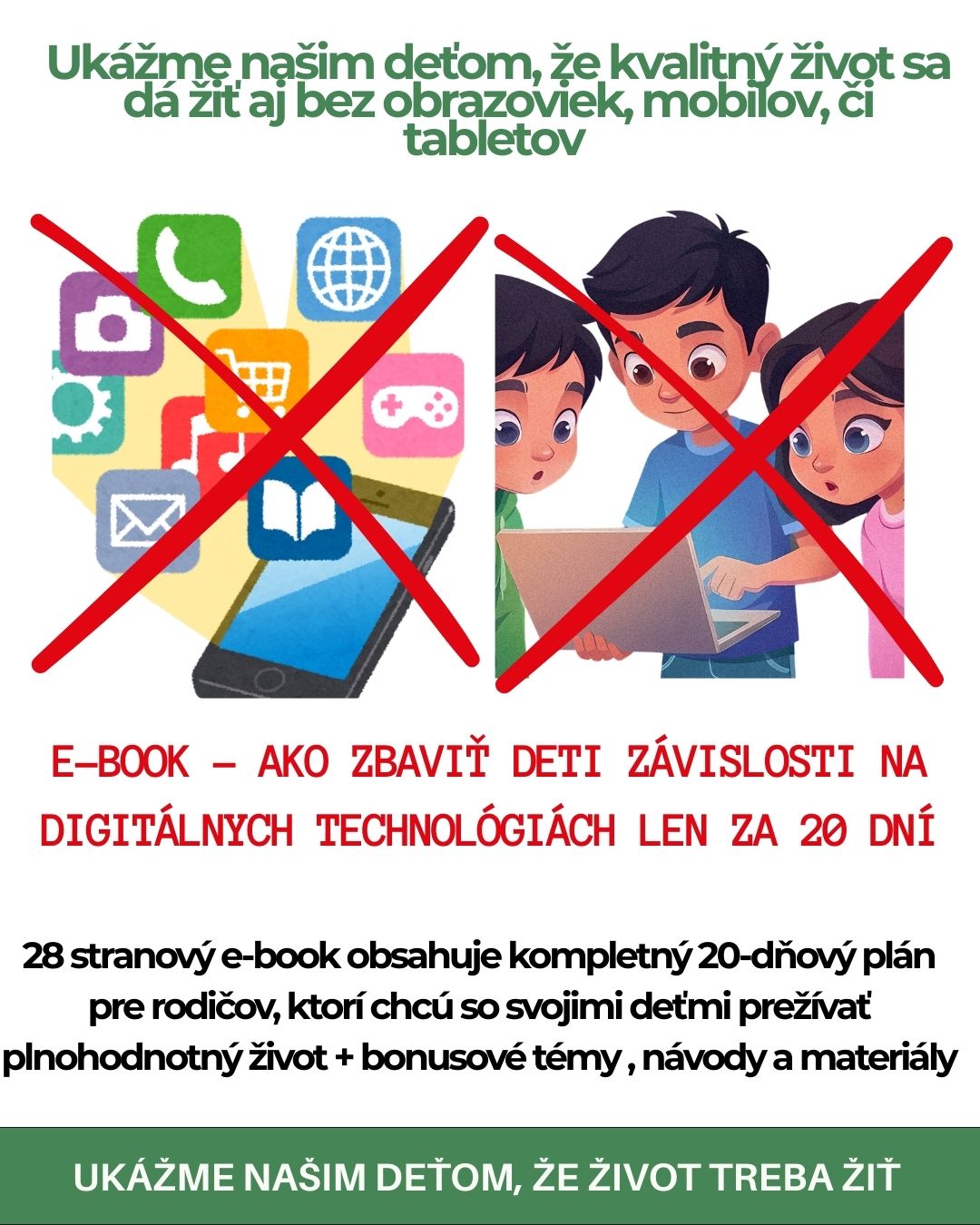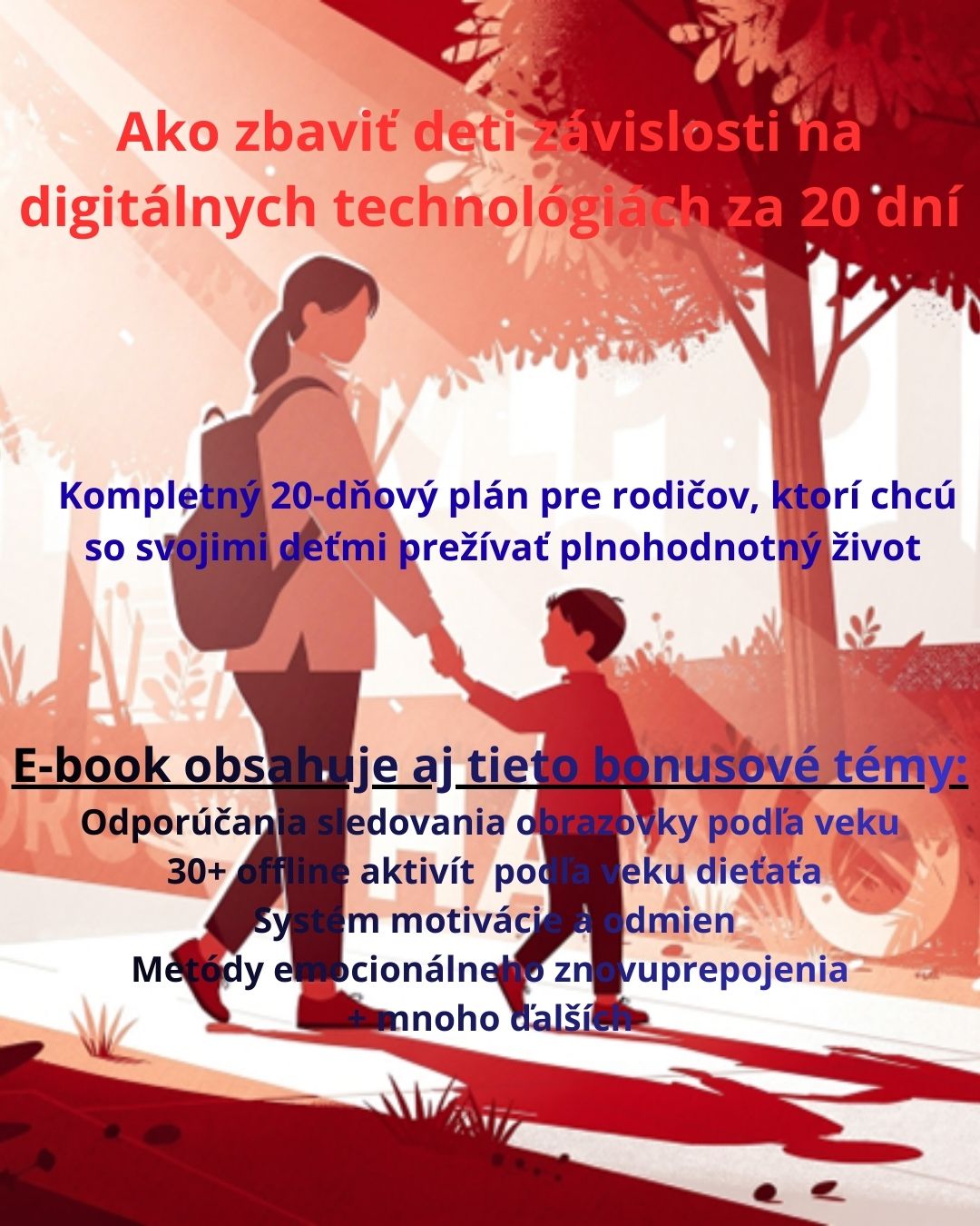 Plán eliminácie závislosti našich detí na digitálnych technológiách len za 20 dní je praktický a ľahko aplikovateľný prístup k nastaveniu hraníc medzi skutočným životom v spoločnosti a digitálnymi prostriedkami, založený na najnovších výskumoch a reálnych rodičovských skúsenostiach.